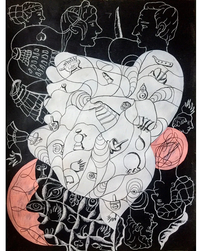 25 3/4 x 19 inches Acrylic, conte, pencil on paper.